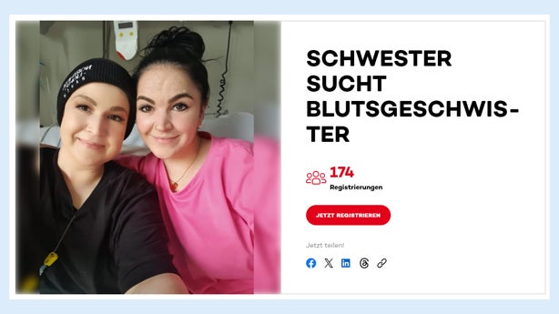 Annes Immunsystem ist von den Behandlungen geschwächt, sodass sie seit Monaten in Isolation im Krankenzimmer ist. Ein normales Leben ist für die ansonsten so aktive und lebensfrohe gebürtige Kölnerin momentan nicht möglich. Ihrer kleinen Nichte, der Tochter ihrer älteren Schwester Iris, kann sie nur durchs Fenster winken. Iris zeigt ihr auf Bildern und Videos, wie das Mädchen größer wird. Sie macht sich große Sorgen um Anne. „Uns rennt die Zeit davon, sie benötigt schnell Hilfe durch eine Stammzellspende. Es ist der letzte und einzige Weg, den Krebs aufzuhalten“, sagt sie. Iris ist gut vernetzt und unterstützt unsere Suche nach einem passenden Match für Anne intensiv. Ihre Community und die Öffentlichkeit bittet sie eindringlich: „Bitte nehmt euch die Zeit und schenkt meiner Schwester und allen anderen Betroffenen weltweit Hoffnung und die Chance auf ein neues Leben. Teilt diesen Aufruf und registriert euch noch heute als Stammzellspender!“ Iris bleibt trotz aller Angst um ihre Schwester zuversichtlich und stark. „Anne möchte leben und wieder mittendrin dabei sein. Sie kämpft jeden Tag aufs Neue. Ihr Lächeln ist dabei nie verschwunden.“