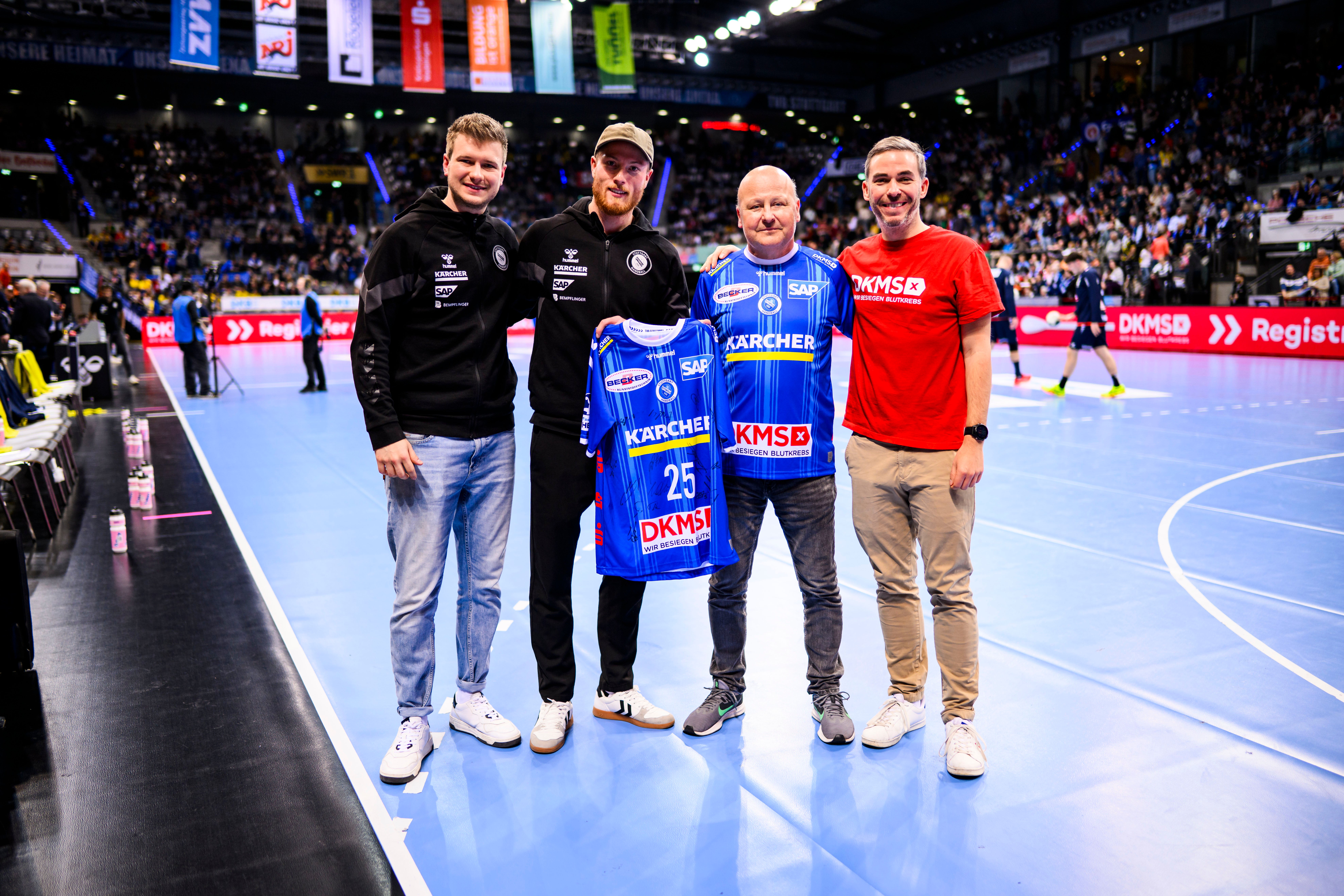 Am 23. Dezember 2024 startete der Handball-Erstligist TVB Stuttgart in seine Offensive gegen Blutkrebs. Gemeinsam mit der DKMS veranstalteten die WILD BOYS eine große Registrierungsaktion im Rahmen des Heimspiels gegen die Rhein-Neckar Löwen in der Porsche-Arena. Die Aktion beim ausverkauften baden-württembergischen Derby bildete den Auftakt der Zusammenarbeit für das Jahr 2025. Exklusiv an diesem Spieltag zierte das Logo der DKMS die Trikots des TVB. Rund 50 Besucher:innen setzten ein Zeichen gegen Blutkrebs und registrierten sich vor Ort als potenzielle Stammzellspender:innen.