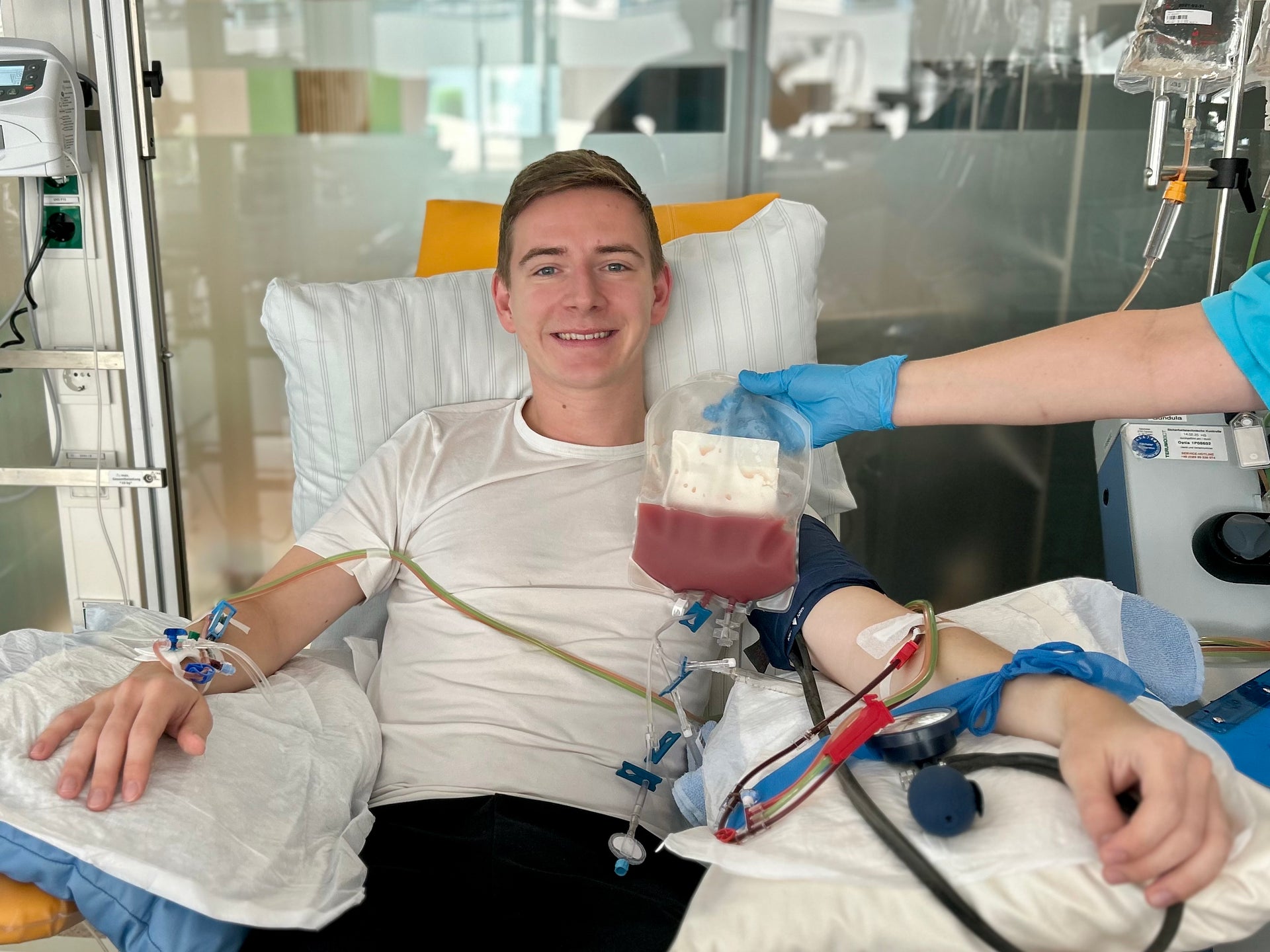 Alex aus Klettbach in Thüringen ist Schiedsrichter und pfeift seit über zehn Jahren in der zweithöchsten Thüringer Liga und lebt das Ehrenamt auf und neben dem Platz. Als die DKMS ihn 2025 kontaktierte, war schnell klar: Er kommt als Spender infrage. „Während der Spende hatte ich ein Glücksgefühl“, erzählt Alex. „Ich war glücklich, dass ich jemand anderem ein Leben schenken kann.“ Seine Stammzellen gingen an einen Patienten in den USA.